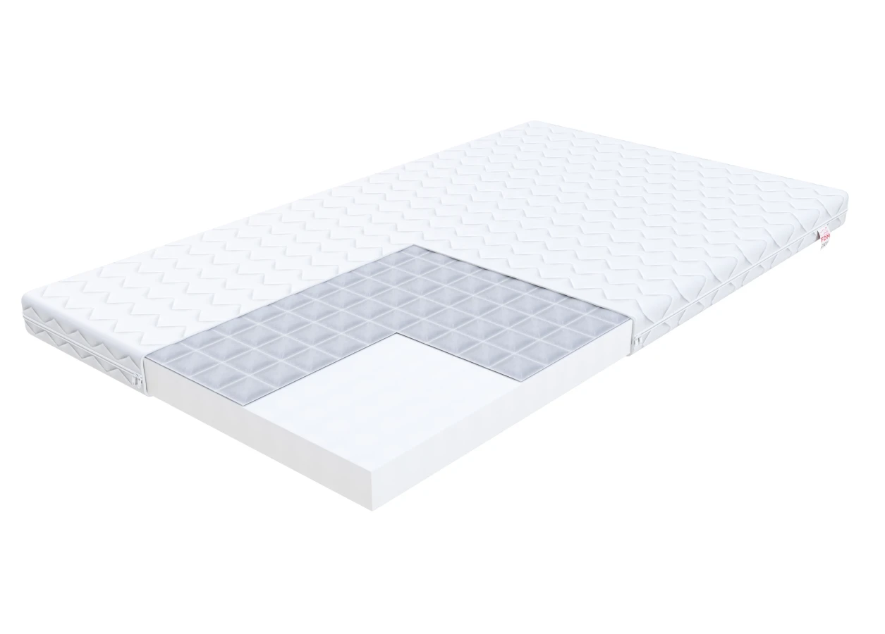 A BABY CARE matrac gyerekágyba a legfiatalabbak igényeire lett szabva. Kialakítása során a fő szempont a gyerekszoba biztonságos és komfortos környezetének megteremtése volt. A belső réteg T25 poliuretán habból készült, amely nem deformálódik, és optimális alátámasztást nyújt a gyermek gerincének – elősegítve a megfelelő testtartást és a nyugodt, pihentető alvást.