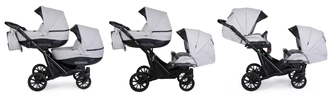A babakocsi elemei szabadon variálhatók, így egyszerre elhelyezhető a vázon például egy mózeskosár és egy sportrész, ami ideális megoldás testvérek számára. Ez teszi a Kunert Booster iker babakocsi modellt igazán rugalmas iker babakocsi választássá a családok számára.