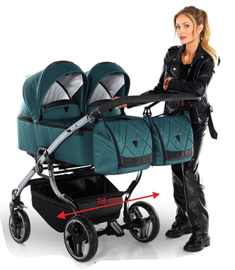 A mindössze 78 cm széles kialakításnak köszönhetően a keskeny iker babakocsi könnyedén áthalad ajtókon és szűkebb helyeken is, így ideális városi használatra is.